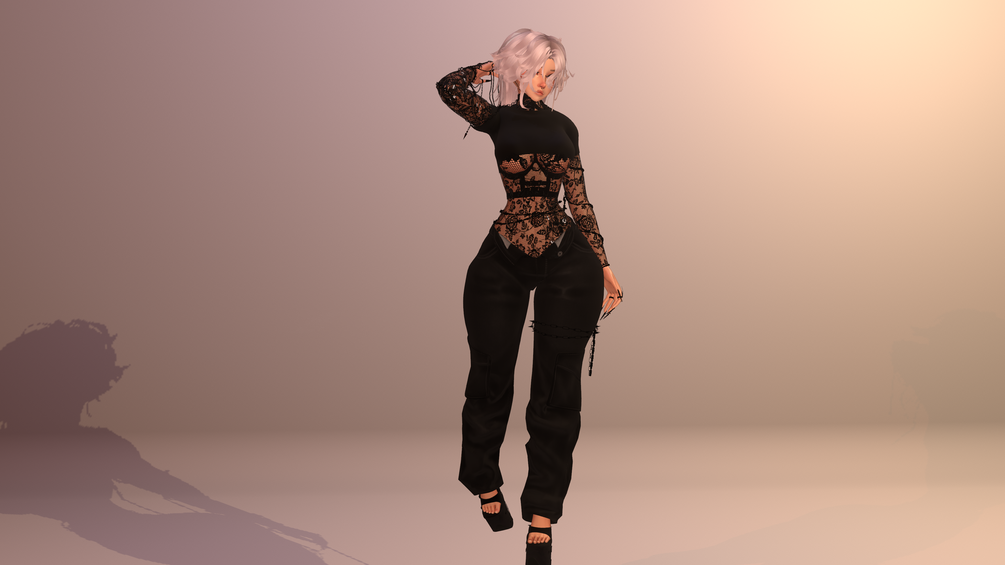 Shirt, Lace Set, nails, eye text, Nose Piercings, Lip piercings & bridge, body tex Fluffy Hair, Wolf Cut & Short Hair, Long Hair, Chain Heels, Coffin Kickers, Crop Top, Jeans, Fishnets, Simple Heels, face tex, Gag, Mask, Corset, Booty Harness, Arm Chains, Hand Chains, Chain Garter, Barbed Wire Waist Chain, Chain Horns, Body Shurikens, Nip Nails, cooch lashes Dress, Toggles